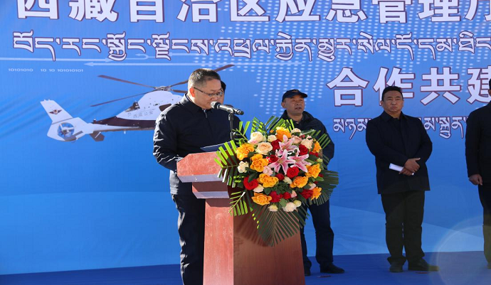 祁騰武代表西藏民航投,對各位領(lǐng)導、嘉賓的到來表示衷心感謝和誠摯歡迎。他表示,西藏航空應急救援基地的建設和揭牌,是貫徹落實習近平總書記關(guān)于西藏工作和應急救援體系建設重要指示批示精神,推動自治區(qū)黨委第十一次、第十四次專題會議精神落實落地的重要舉措,為推動我區(qū)不斷健全完善“統(tǒng)一指揮、上下聯(lián)動、空地同、快速反應”應急救援機制和“立體式、全天候、全災種、高水平”綜合應急救援體系邁出了堅實的一步。期待民航投與自治區(qū)應急廳的戰(zhàn)略合作從“心”出發(fā),向新而行,不斷開創(chuàng)新的局面,交出滿意合格答卷。