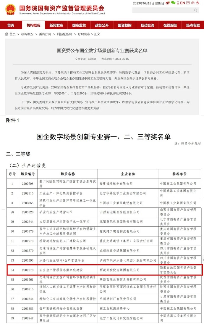 捷報傳來丨西藏開投集團(tuán)榮獲國企數(shù)字場景創(chuàng)新專業(yè)賽生產(chǎn)運營類三等獎
