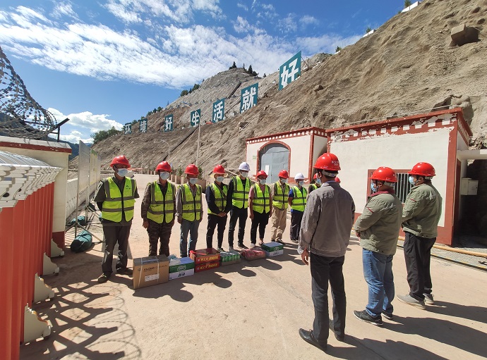 日前,昌都市疫情防控正處于緊要關(guān)頭,疫情傳播尚未完全阻斷。在人員密集的施工項(xiàng)目現(xiàn)場(chǎng),疫情防控形勢(shì)仍然嚴(yán)峻復(fù)雜。8月17日,果多水電公司派員赴電站右岸壩肩邊坡植被恢復(fù)工程現(xiàn)場(chǎng)慰問(wèn)一線施工人員,并督導(dǎo)檢查疫情防控工作。