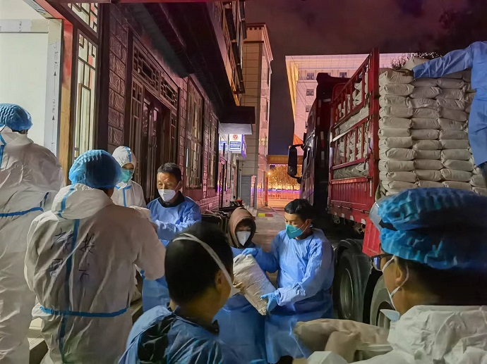 進(jìn)駐 “疫”線后,集團(tuán)公司副總經(jīng)理尼瑪親任志愿服務(wù)隊(duì)隊(duì)長,迅速組建后勤保障組、工作聯(lián)系組、防疫信息組、時(shí)事宣傳組,為做好志愿服務(wù)疫情防控工作提供組織保障。志愿服務(wù)隊(duì)各盡其職、團(tuán)結(jié)一心、分工協(xié)作。據(jù)統(tǒng)計(jì),截至9月26日,已完成米、面、糌粑等重要物資裝卸、轉(zhuǎn)運(yùn)45.98噸,完成新冠病毒核酸檢測7530人次,對(duì)陽性居住區(qū)進(jìn)行消毒消殺12戶。