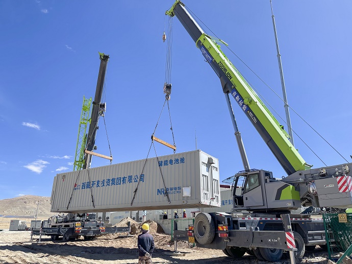 崗巴光伏儲(chǔ)能建設(shè)項(xiàng)目電池艙吊裝就位