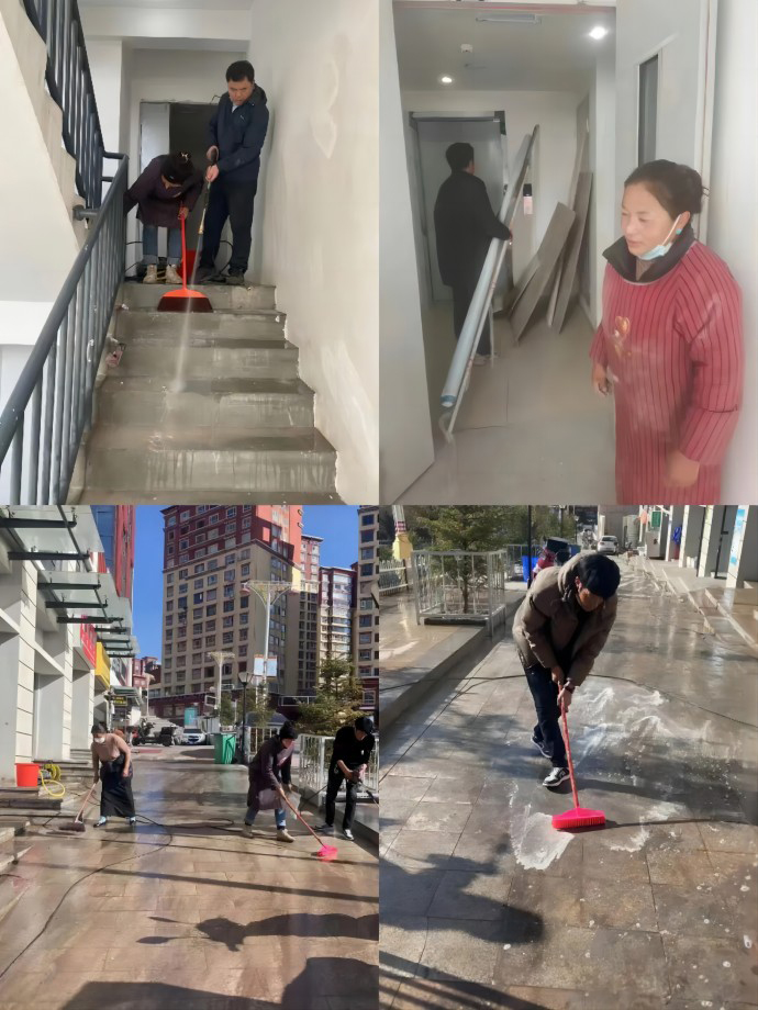 活動中,物業(yè)公司各項目部干部職工紛紛化身“清潔能手”“文明衛(wèi)生使者”,發(fā)揚不怕臟、不怕累、不怕苦的精神,對各生產(chǎn)生活區(qū)域進(jìn)行全面大清掃,竭力做到所到之處無盲區(qū)、無死角。大家齊心協(xié)力、干勁十足,一片熱火朝天的景象。