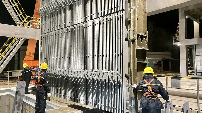 7月13日,受上游來水影響,金橋水電站迎來2023年入汛最大流量,大量樹枝、雜草等堆積在電站進(jìn)水口攔污柵上,攔污柵前后壓差不斷增大。7月14日凌晨,為確保機(jī)組安全穩(wěn)定運(yùn)行,金橋水電公司連夜組織人員對(duì)進(jìn)水口攔污柵進(jìn)行清理。