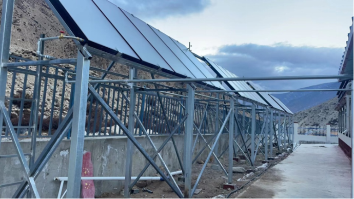 日喀則市定日縣曲當(dāng)鄉(xiāng)德吉村、優(yōu)帕村、嚴(yán)曲村位于珠穆朗瑪峰自然保護(hù)區(qū)核心區(qū),均為定日縣偏遠(yuǎn)邊境鄉(xiāng)村。項(xiàng)目供暖總面積為593.39m2,包括太陽能集熱器系統(tǒng)、輔助熱源(空氣源熱泵),儲(chǔ)熱系統(tǒng)、末端設(shè)施,光伏發(fā)電系統(tǒng),建筑節(jié)能改造等內(nèi)容。在日喀則市發(fā)改委的領(lǐng)導(dǎo)下,南亞公司(西藏開投下屬二級(jí)公司)以人為本、科學(xué)管理、精心組織,克服設(shè)備運(yùn)輸艱難、人員組織困難、施工機(jī)械短缺、項(xiàng)目工期緊張等種種困難,如期實(shí)現(xiàn)了項(xiàng)目投產(chǎn)。同時(shí),為評(píng)估和提升項(xiàng)目效能,配套了PLC自控柜,對(duì)供暖數(shù)據(jù)進(jìn)行遠(yuǎn)程收集及數(shù)據(jù)分析。在本項(xiàng)目運(yùn)行一個(gè)采暖期后,將對(duì)項(xiàng)目的規(guī)模效益、財(cái)務(wù)效益、綜合效益進(jìn)行綜合評(píng)價(jià),并對(duì)清潔能源供暖方式替代傳統(tǒng)燃料的減碳效果進(jìn)行科學(xué)分析,確保形成村居供暖工程可靠性好、性價(jià)比高、適宜推廣的決策方案,為全面復(fù)制推廣實(shí)施全區(qū)農(nóng)牧區(qū)清潔供暖供熱項(xiàng)目做出貢獻(xiàn)。