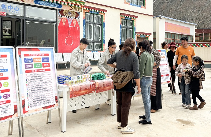 活動現(xiàn)場通過設置安全宣傳展板、懸掛橫幅、發(fā)放安全宣傳手冊和安全宣傳小禮品等方式,向群眾集中宣傳農(nóng)村消防安全、汛期安全、燃氣安全、地震應急避險、防火逃生等知識,并與波乃村村委會簽訂了應急救援互助協(xié)議書。