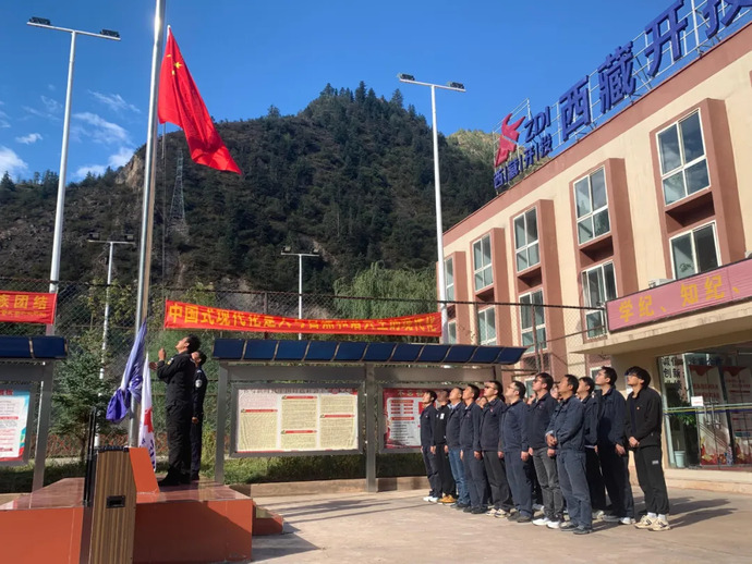 10月1日,果多水電公司全體干部職工在辦公樓前整齊列隊(duì)。隨著莊嚴(yán)肅穆的音樂(lè)聲響起,升旗儀式正式開(kāi)始,鮮艷的五星紅旗冉冉升起,迎風(fēng)飄揚(yáng),全體干部職工面向國(guó)旗行注目禮,共同表達(dá)對(duì)祖國(guó)的忠誠(chéng)和熱愛(ài)。