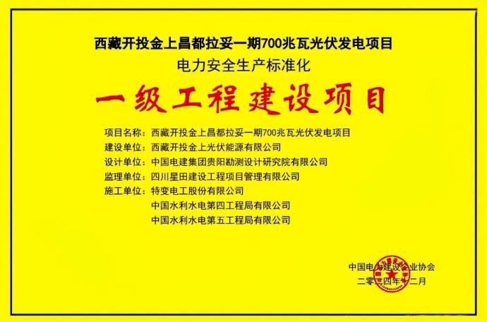 捷報(bào)傳來丨金上拉妥一期700兆瓦光伏項(xiàng)目獲“一級(jí)工程建設(shè)項(xiàng)目”榮譽(yù)
