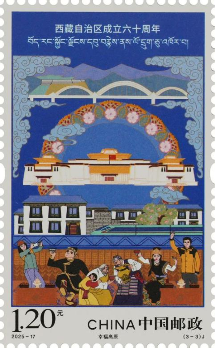 在西藏自治區(qū)成立60周年之際,中國郵政日前正式發(fā)行《西藏自治區(qū)成立六十周年》紀念郵票1套3枚,第三枚“幸福高原”將旁多水利樞紐與拉林鐵路、拉薩河特大橋等標志性工程共同呈現,于方寸之間展現了西藏發(fā)展的壯闊歷程。旁多水利樞紐這座被譽為“西藏三峽”的超級工程,已成為西藏跨越式發(fā)展的重要象征。
