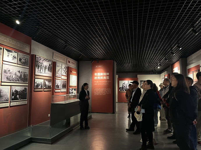 在講解員引導(dǎo)下,大家參觀了由“一生奉獻(xiàn)給黨的事業(yè)”“老西藏精神的光輝典范”“紅色基因代代相傳”三個(gè)單元組成的陳列展,認(rèn)真聆聽了“從參加革命到解放西南、和平解放時(shí)期、在執(zhí)行協(xié)議的八年歲月、重返西藏、永不褪色的老西藏精神”等反映譚冠三將軍一生和西藏各族各界人士傳承老西藏精神的故事。