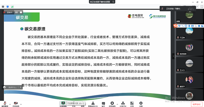 講座就“碳中和”國際背景、國家“碳達(dá)峰”“碳中和”目標(biāo)和政策進(jìn)行了深入解讀。對自愿減排項目的開發(fā)路徑、重點(diǎn)項目碳排放的核算、碳交易市場建設(shè)以及國際綠證開發(fā)等相關(guān)概念與實施的基本原則進(jìn)行了講解與答疑。