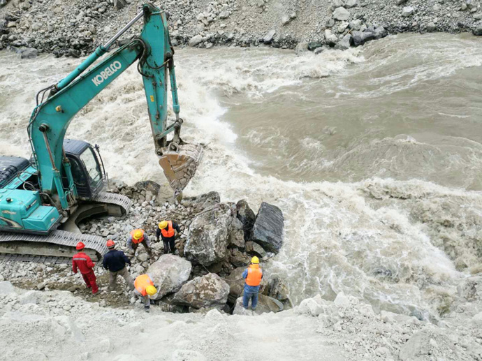 災(zāi)害發(fā)生后,金橋公司第一時間啟動了防洪度汛應(yīng)急方案,主要領(lǐng)導(dǎo)深入一線,全力組織公司員工及各參建單位開展搶修,現(xiàn)場及時解決搶修工作中遇到的難題。同時嘉黎縣黨委政府積極應(yīng)對,及時處置災(zāi)后各項(xiàng)工作,一方面積極做好災(zāi)情的核災(zāi)上報和受災(zāi)群眾的安撫疏導(dǎo)工作,另一方面積極發(fā)動和帶領(lǐng)公安干警、消防官兵、養(yǎng)護(hù)段工作人員、廣大群眾開展道路搶通維護(hù)工作。