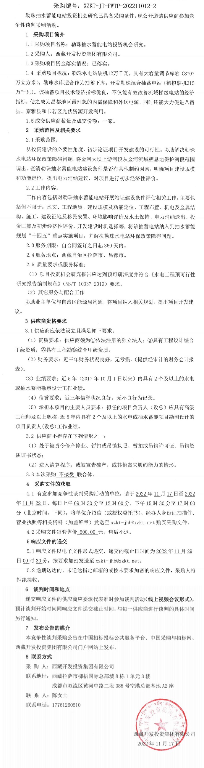 勒珠抽水蓄能電站投資機(jī)會研究競爭性談判采購二次公告
