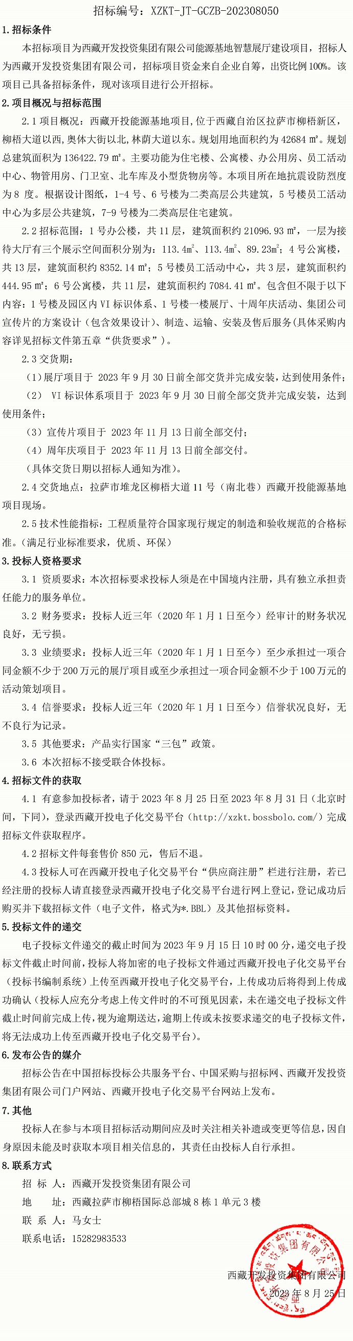 西藏開發(fā)投資集團有限公司能源基地智慧展廳建設項目招標公告