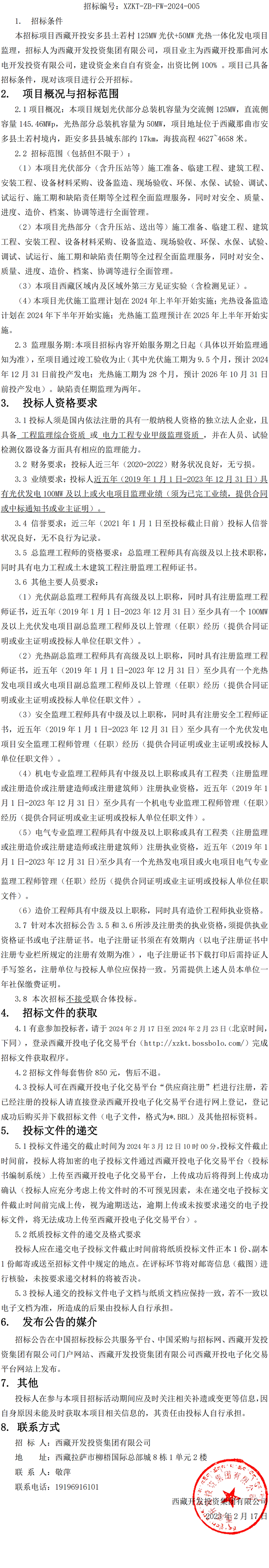 一體化發(fā)電項目監(jiān)理招標(biāo)公告