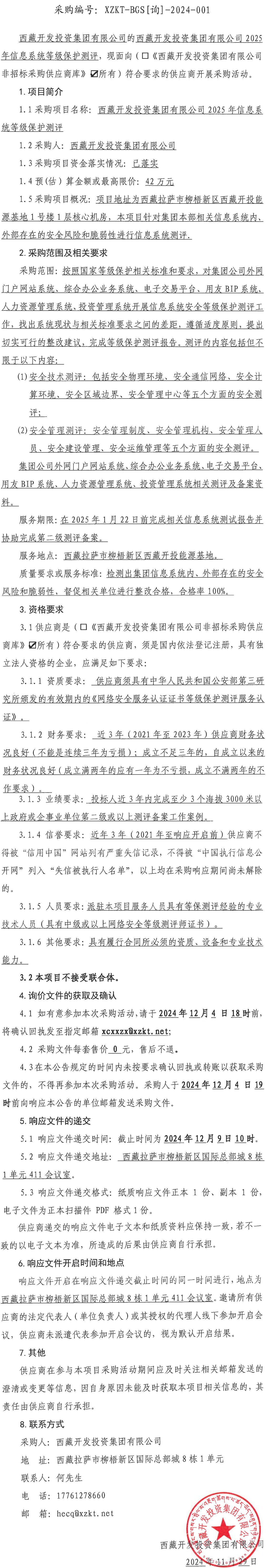 西藏開發(fā)投資集團(tuán)有限公司2025年信息系統(tǒng)等級保護(hù)測評詢價(jià)采購公告